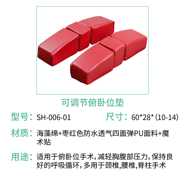 俯臥位墊主要用于手術過程中患者的俯臥體位支撐。在進行某些手術時,如脊柱手術、后路手術等,需要將患者置于俯臥位,此時俯臥位墊能夠提供穩定的支撐,確保手術過程中的體位安全。