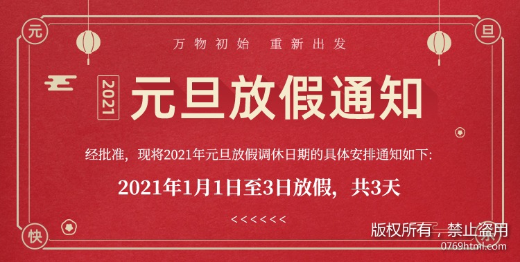 2021年1月1日至2021年1月3日,共計3天,2021年1月4日正常上班,放假期間,望各位出行注意防護以及保暖哦!